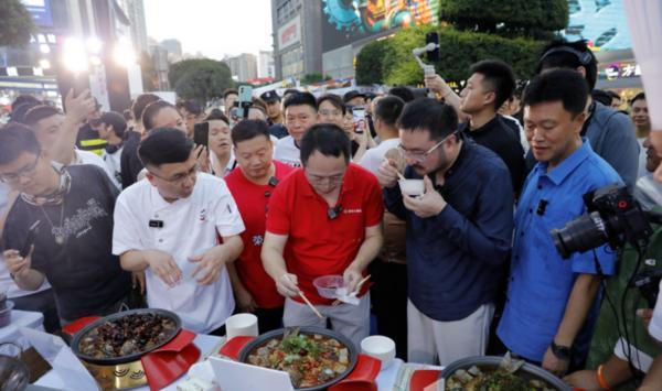 △周鸿祎品尝★◆◆■◆“渝味360碗■★◆◆■”菜品。(图片来源:第1眼TV-华龙网记者石涛 摄)